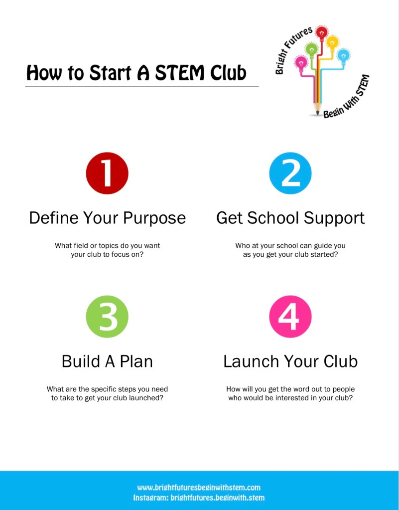 Comment below if you have started a club and have additional tips and suggestions. Or if you are starting a club, feel free to ask any questions that the Bright Futures Begin With STEM community can answer.
